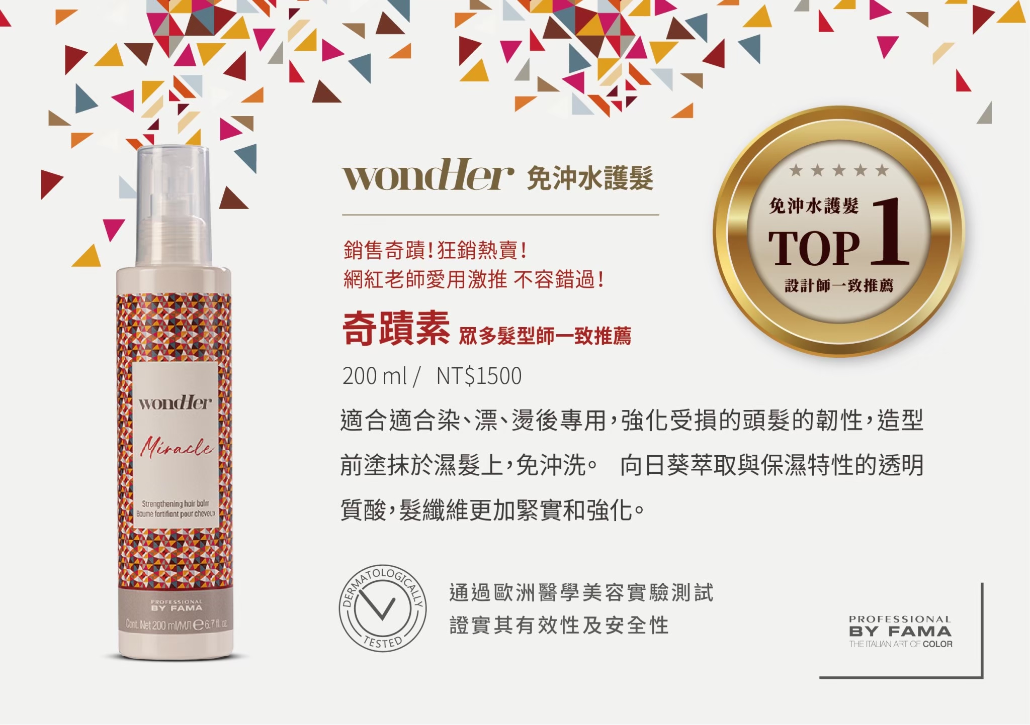 👉🏻漂髮前、造型前噴灑於濕髮上,可使髮纖維更加緊實及強化。
